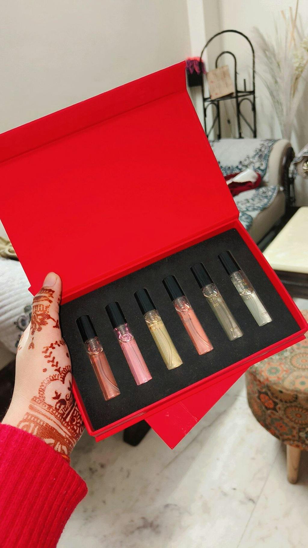 I bought this luxury perfume set for my sister's birthday gift , she loved it a lot , this perfume smells so luxury and it was Long-lasting .